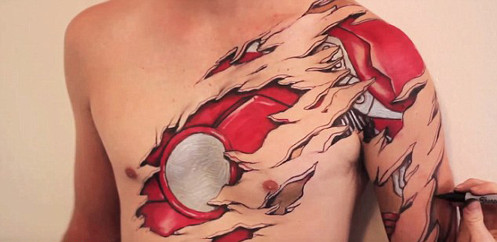 超现实人体彩绘艺术:撕裂皮肤变身超级英雄(组图)