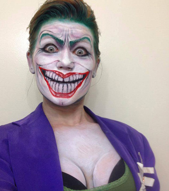 斯蒂尔利用自己的天赋将这名模特变成电影《蝙蝠侠之黑暗骑士》中的反面角色“小丑”。(网页截图)