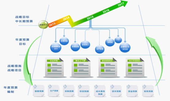第一, 分解战略目标,支撑战略落地。全面预算管理以“企业战略目标->年度预算目标->战略措施->年度预算编制”的思路,将企业的战略层层分解为可以执行的年度预算,明确降本增效的目标。