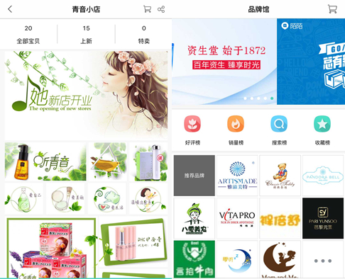 图:繁星优选名人店与品牌店一键式购物