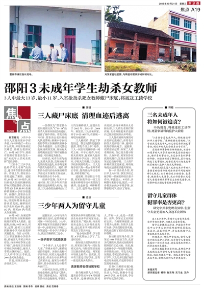 10月21日本报曾报道“三未成年学生劫杀女教师”事件。