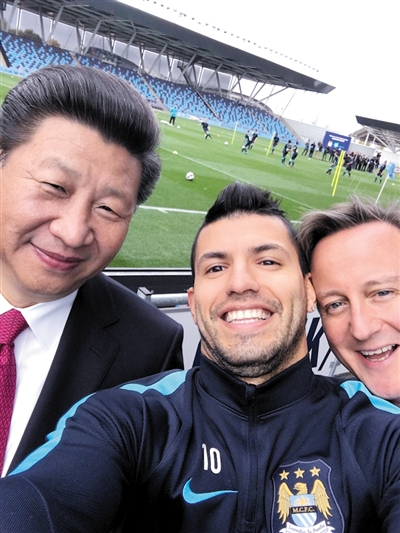 曼城球星阿圭罗晒出与习近平的自拍照。图/曼城官微