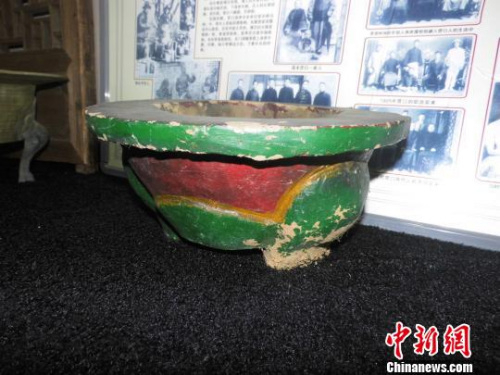 图为辽南民俗文物——泥质的彩绘火盆。 张海雯 摄