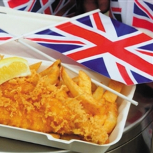 是英国人最喜爱的外带热食。炸鱼薯条包含一片裹面粉油炸的鱼和一份薯条; 传统上是撒盐和醋吃的。以前炸鱼薯条是包在报纸里带回家吃的,但当今基于卫生改用白纸包或使用快餐盒。