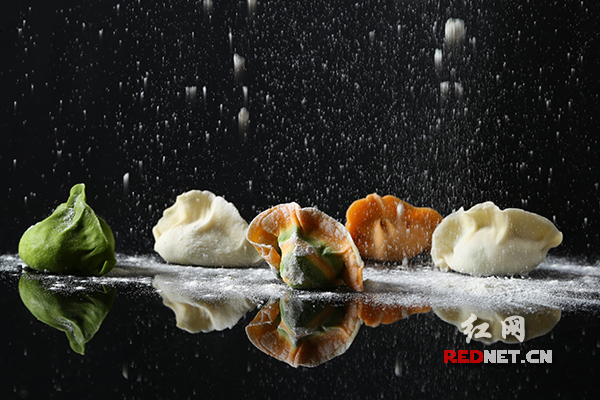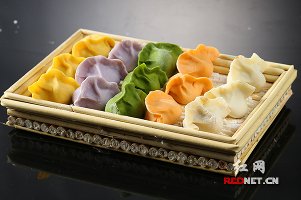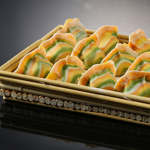 (蔬菜汁制成的雨花石饺子)