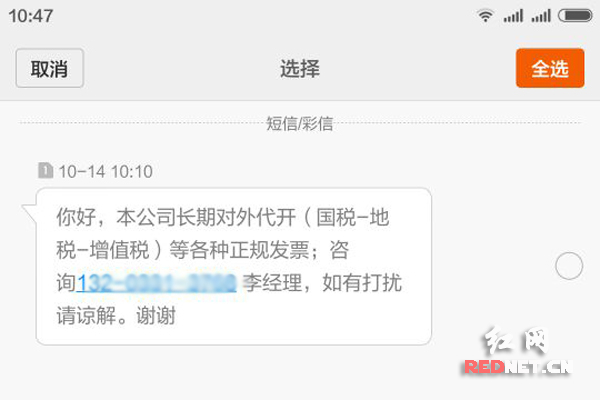 (市民手机中经常可以收到类似“代开发票”的短信。)