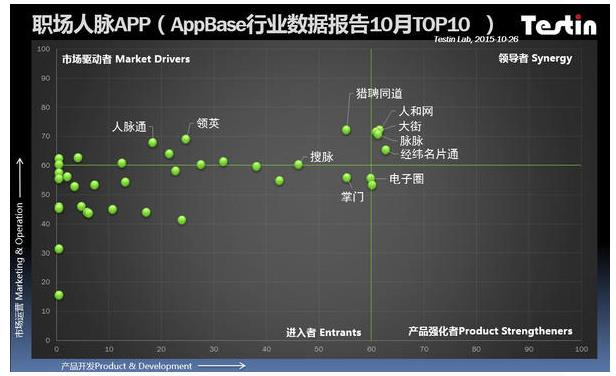 根据国内外最大型权威的AppBase数据显示,2015年10月职场人脉App综合竞争力Top 10排行榜如下: