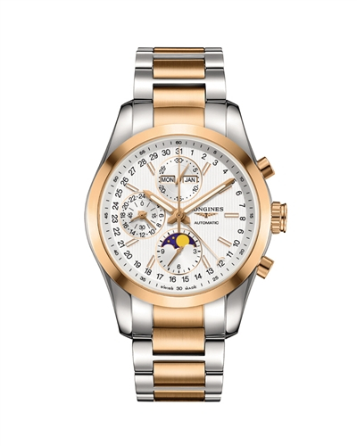 浪琴表康铂系列精钢玫瑰金月相计时腕表(参考价:RMB 39900)