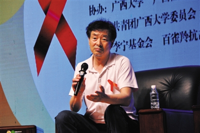 今年5月,濮存昕在广西壮族自治区南宁市高校宣传预防艾滋病。从2000年接受卫生部聘书开始,这一公益工作已经做了15年。