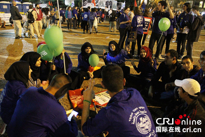 参加拉宾遇刺20周年纪念集会的阿拉伯学生。(摄影:张瑾)