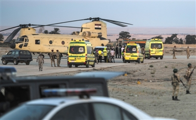 昨日,埃及方面的救援车队将遇难者遗体转交至军用飞机。当日,俄罗斯一架载有200余人的飞机在埃及坠毁。