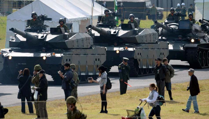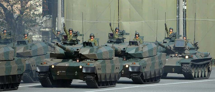 当天,自卫队员们列队行进后,直升机飞行列队、侦察摩托车、各种汽车等依次通过,10式坦克等坦克部队在最后收尾。