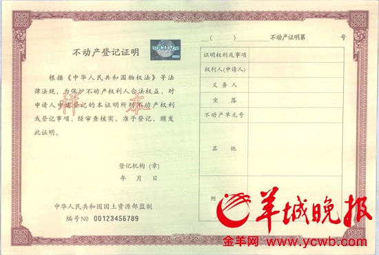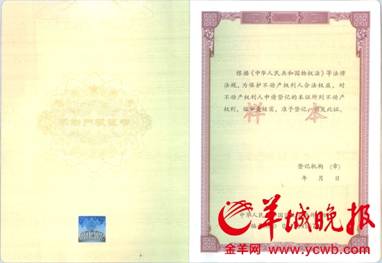 广州颁发首本《不动产权证书》 原有房产证一样有效