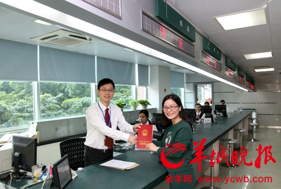 广州市民冯小姐成为今天第一个领到《不动产权证书》的幸运儿。