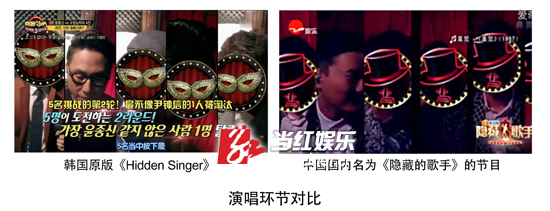 周捷强调,《隐藏的歌手》为本土原创节目,不存在与韩国节目的版权纠纷。“首先,《隐藏的歌手》没有英文名字,韩国《Hidden Singer》目前没有中文名字,翻译成中文可以叫《隐藏的歌手》,也可以叫《隐藏的歌神》,不存在名字侵权。另外,两档节目的内核和界定也存在不同。”周捷举例,赛制上,《Hidden Singer》一季13期,12期常规节目加一集歌王争霸赛。《隐藏的歌手》一季11期,10期常规节目最后一集节目是模仿者与歌手的大联欢、演唱会,没有竞技色彩;其次,内容上,《Hidden Singer》更强调娱乐、游戏性,《隐藏的歌手》则主打怀旧,歌手与观众之间的情感互动、讲述歌曲背后的故事是重点。