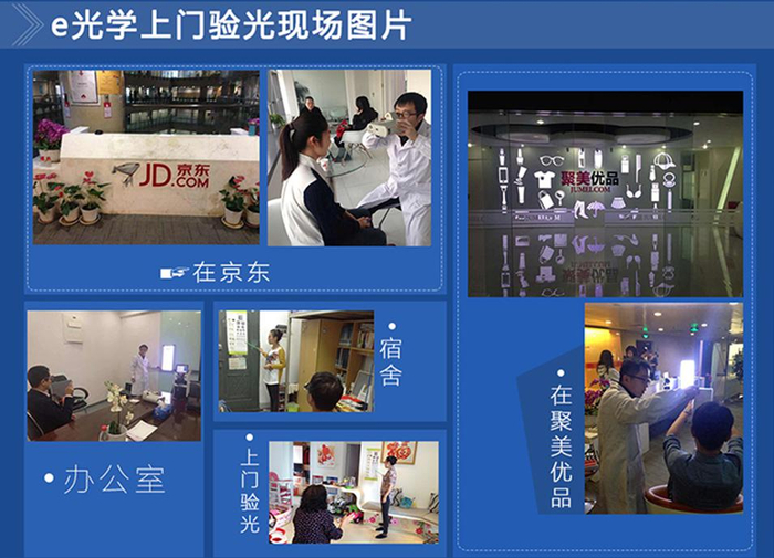 预约上门验光,不受地域、时间、人数的限制,家里、咖啡馆、教室、会议室...验光都不是问题。无论是个人验光还是企业验光、预约上门验光配镜,e光学无处不在。目前上门配送眼镜的服务方式受到了很多公司白领欢迎,在京东和聚美优品都有e光学工作人员眼光配镜的身影。