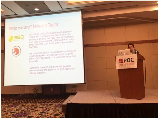 11月5日下午,来自360 Unicorn Team的黄琳博士登上了POC的讲台,并以《GPS SPOOFING》为题发表演讲。