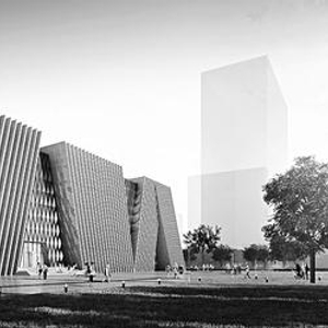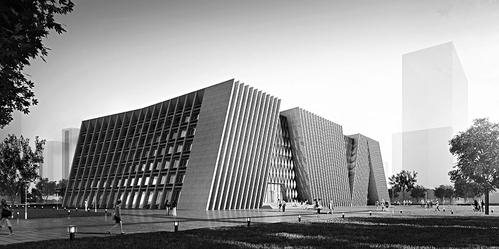 太原市图书馆改扩建后外景效果图和大厅效果图