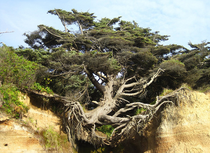 这棵大树的许多根须都已经暴露在空气中,随风摆动。随着时间推移,悬崖被渐渐侵蚀,而大树依然在茁壮成长。尽管只有少部分根须与土壤接触,但每年春天其依然会发出嫩绿树叶。尽管美国海岸地区经常遭到风暴袭击,但这棵大树却始终未被吹倒,依然保持活力。尽管这棵大树没有正式名称,但人们通常称其为“生命之树”或“逃跑大树”。