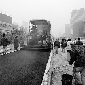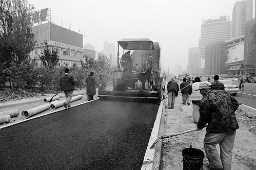 11月5日,太原市笼罩在一片雾霾中,划过脸庞的风带着丝丝凉意。学府街道路改造即将完工,施工现场,零星的工作人员正在进行收尾处理。