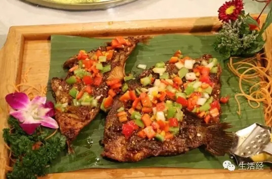 可乐可乐酱烤鱼在印尼Sulawesi和Maluku地区非常流行,在鱼身上用辣椒、洋葱和橄榄油精致而成的麻辣香味的Colo Colo汁后烤制,上桌后滴上柠檬汁。一定趁热吃,烤制的鲈鱼肉质鲜香可口,色、香、味俱全。是印尼大使的必点之菜。