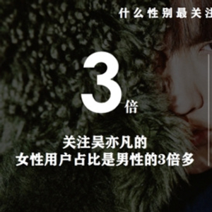 今日头条对粉丝进行分析发现:关注吴亦凡的女性用户占比是男性的三倍多,而这些人中,18~30岁的青年女性占比最大,其中又以18~23岁的人群为中坚力量。