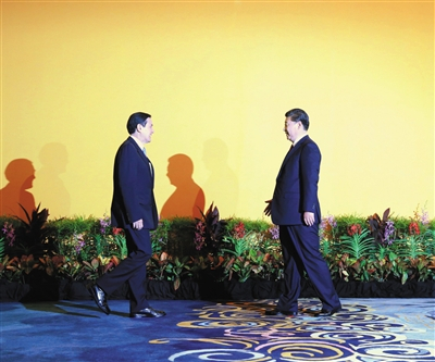 昨日,新加坡香格里拉酒店,两岸领导人习近平和马英九会面。本版摄影/新京报记者 薛珺 摄