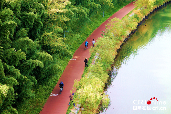 太和江两岸拆除了混凝土河堤,改为植物湿地堤岸,沿江修设步行道、自行车道、运动设施、公园等,将太和江建设成为自然型河流 摄影:陈鹏