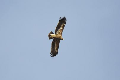 “草原鵰算是川西北高原的一种留鸟,并不常见。2014年元旦,我到若尔盖花湖观鸟时,曾拍到过草原鵰,”成都观鸟协会会长沈尤翻出一张照片,一只草原鵰展翅翱翔,羽翼丰满,英姿煞爽。草原鵰是一种大型猛禽,体长为71至82厘米,体色基本呈褐色,主要分布在俄罗斯、蒙古、中国等地,在四川省甘孜州、阿坝州一带偶尔也会出现它的倩影。