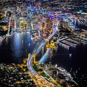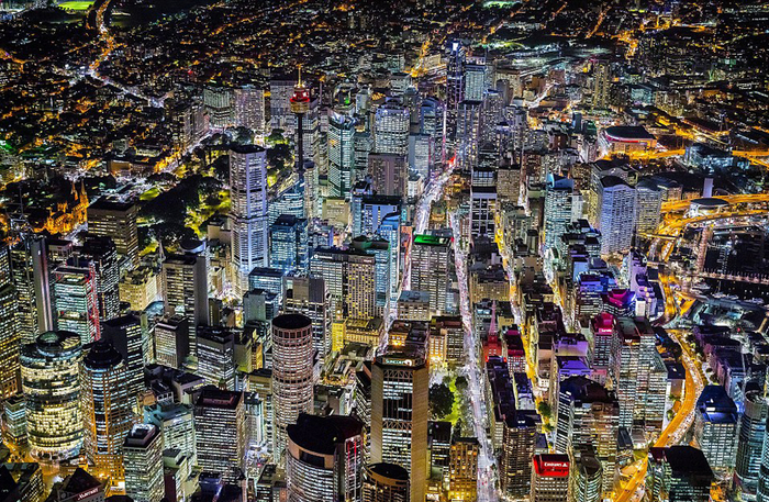 摄影师朗福瑞德乘坐直升机拍摄的悉尼夜景。(网页截图)