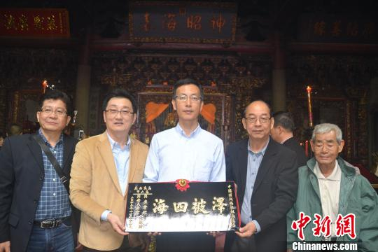 图为马来西亚马六甲兴安会馆向湄洲妈祖祖庙敬赠牌匾。 林群华 摄