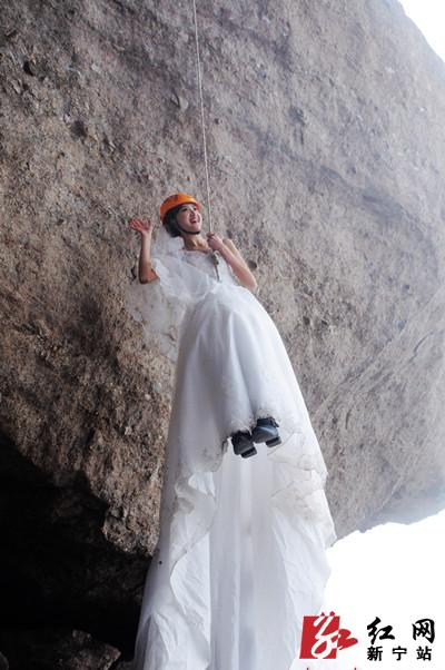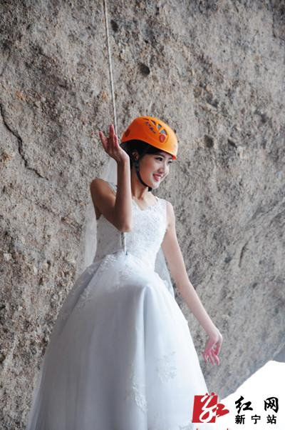 当天上午11时30分,身披雪白婚纱的李淑婉如仙子般登上了岩壁速降平台。岩壁上的李淑婉仿佛与峎山溶为了一体,尽情地展示着婀娜多姿的身材,展示着独特迷人的风彩,让现场的粉丝们如痂如醉。