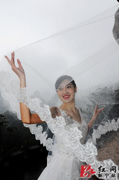 环球小姐亚军李淑婉披婚纱在崀山岩壁上向全球征婚