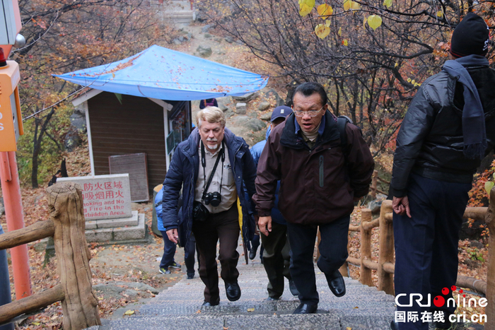 海外网友和记者攀登千级台阶。摄影 付承堃