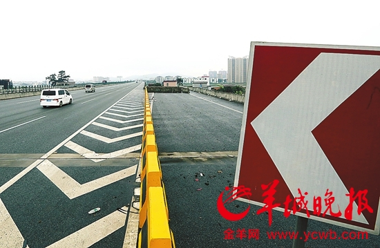 广州上沿江高速的沿途标识不明显,看到再转弯已来不及羊城晚报记者王俊伟摄