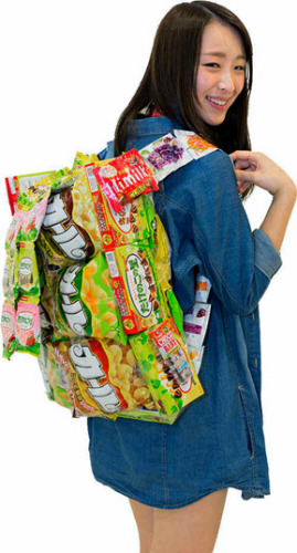 据报道,这种将各色零食包装拼接在一起,组成一个背包的DIY创意,最先是从韩国发起的。“五颜六色的真可爱!”,随着零食背包的图片在网上传开,今年春天时节这个创意在日本女高生中之间也迅速蹿红。之后便作为生日礼物及聚会道具开始成为一种流行。