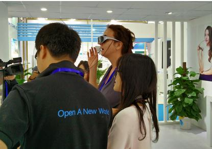 当前,在中国大力鼓励创新创业的背景下,本次高交会也格外受到关注。在智慧城市馆内,一副酷似太阳眼镜的VR智能眼镜连着迷你主机展示着虚拟投篮和全景视频,引起了国家发改委、国家信息中心和深圳市领导的注意,并给出高度评价。