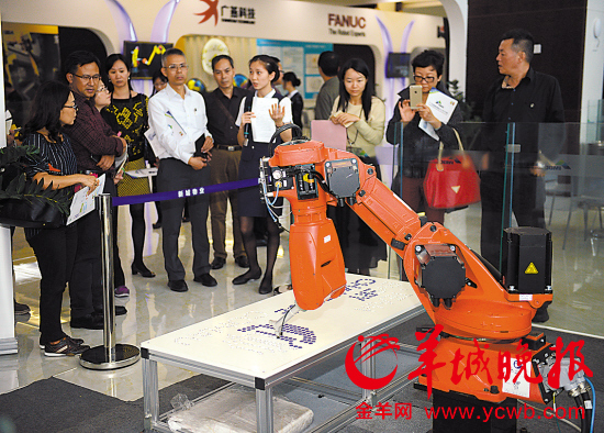 在佛山新城中欧中心,大咖们体验到佛山智造的别样魅力。号称机器人超市的广东智能制造示范中心(机器人·大世界)就坐落在中欧中心。在机器人大世界工业机器人展示区,各种机器人正准确无误地自动操作。在柯马机器人展区,机械臂能准确地搬动纽扣大小的配件排成英文单词。能不能搬动大的物件?是通过什么办法能让它准确操作?大咖们十分感兴趣,纷纷向讲解员询问。