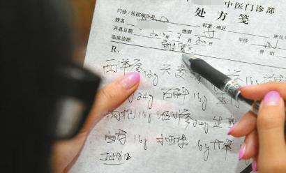 在一张治疗急性胃炎的处方单上,最后一味药是“过山龙”(红圈内),实际是穿山甲鳞片。