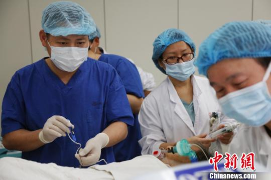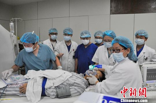 19日,上海瑞金医院使用纳米刀消融技术为一名失去外科手术机会的胆管细胞癌患者进行治疗。 瑞金 摄