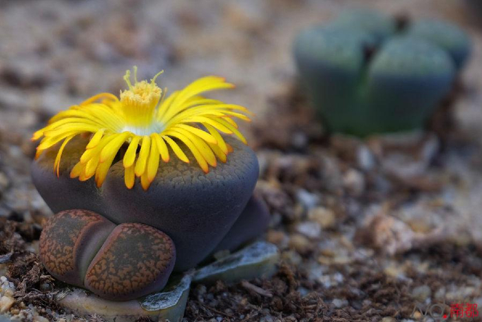 在温棚内,一种质感看上去像石头,形状又像人屁股的植物显得比较奇特,工作人员说这植物就叫生石花,也叫屁股花,说着工作人员指着远处已经开花的屁股花给记者看,原来屁股花还真是从两瓣屁股中间的缝隙中长出一朵黄色像菊花一样的花朵来。
