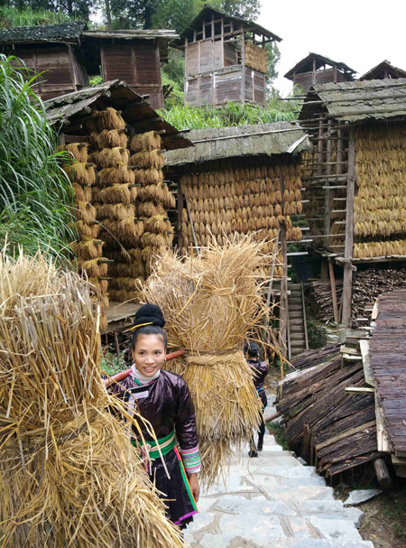 侗族姑娘杨正丽告诉中国青年报记者,黄岗村住着1000多人,出去打工的不多,除了通了水电,人们的生活状态和百年前并无太大区别,“都是自给自足,穿着自己做的传统服饰,割稻、舂米、织布、唱侗族大歌……”