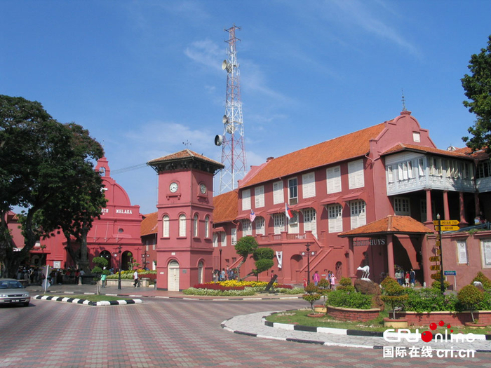 来到马六甲的中心广场(荷兰广场),一组外表漆成红色的古建筑群立即映入眼帘,衬着蓝天、绿树和白云,显得格外耀眼。那是荷兰人在统治马六甲时期修建的一些主要建筑,著名的荷兰红屋就在其中。
