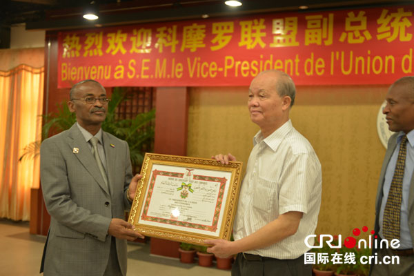 2013年科摩罗联盟副总统兼卫生部长福阿德·穆哈吉为李国桥教授授予总统奖章