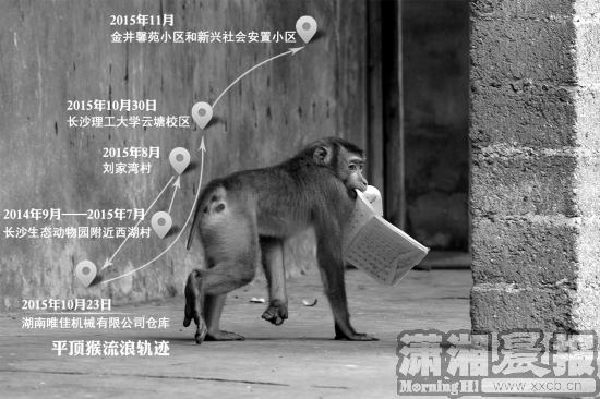 红网长沙11月23日讯(潇湘晨报记者 吴和健)11月18日,有媒体报道在长沙理工大学云塘校区有猴子出没。之前的11月5日,有市民在学校附近的金井馨苑和新兴社会安置小区也发现了一只猴子。而在10月份,长沙生态动物园附近的某公司仓库同样有猴子出没。更早前的5月份,有市民甚至反映在动物园附近的西湖村还有几只猴子长驻。猴儿们看上去呆萌可爱,但所经之处搞点小破坏即逃之夭夭,令人啼笑之余却无可奈何。它们从哪里来,又将会去哪里?