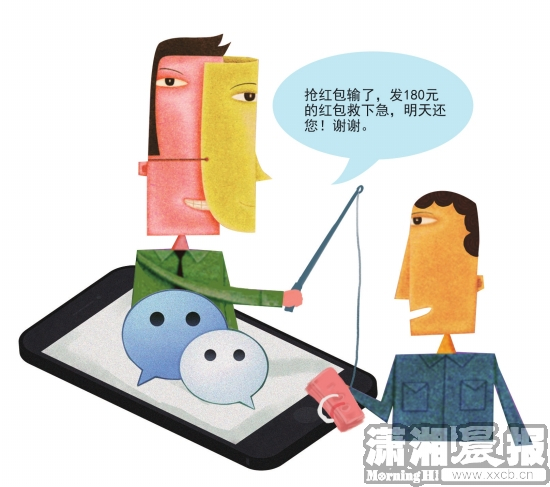 汪先生在微信上咧嘴一笑,随手就把红包转了过去。“根本没多想。”汪先生说,杨先生平时很幽默,微信也玩得很转,经常在群里搞“突然袭击”发几个红包逗大家开心。现在杨先生向自己求援,估计也是手指动得太快,系统跟不上了。
