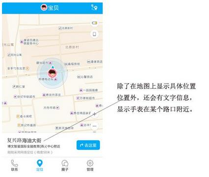 在手机联网状态下,打开“360儿童卫士”APP,点击“定位”,手机会自动搜寻手表的所在位置,并开始实时定位,孩子的一举一动轻松get,就类似于百度地图的界面,苹果手机上默认使用的是高德地图,地图右侧有手表电量。