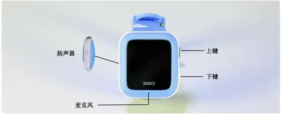 手表左侧为扬声器,右侧有两个也是唯一的两个控制按钮,上键是菜单选择按键,下键是确定按键,也是电源键,屏幕下方的小孔是麦克风。