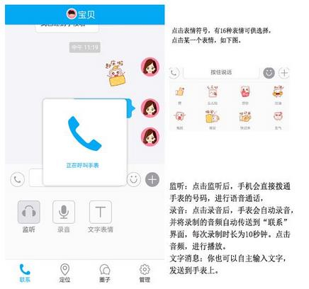 点击“联系”就可以用手机给宝宝发信息、打电话以及进行监听宝贝了。
