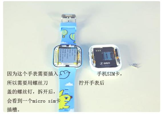 将最上边的卡盖掀开,将SIM卡的金色触点朝下,插入到SIM卡插槽中,轻按下卡盖,并慢慢向上推,听到“叮”的一声后,SIM卡即安装完毕。再将后盖扣好,螺丝钉拧紧。切记,一定要拧紧,直到后盖和表盘没有缝隙。